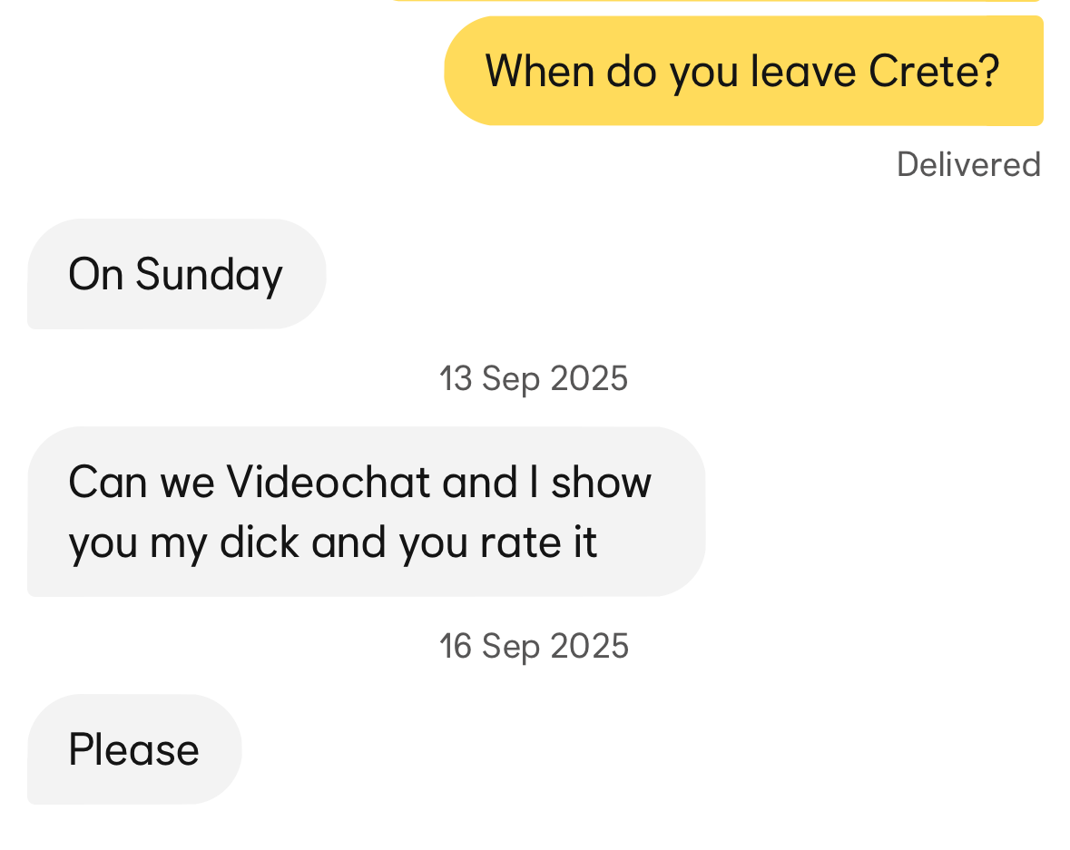 On dating apps, my friends and I get an insane amount of first messages from men asking to lick our pussy or show us their dicks. So now, thanks to them, I’ve become a cliche cunt who has to ask the question - what the fuck happened to hello?